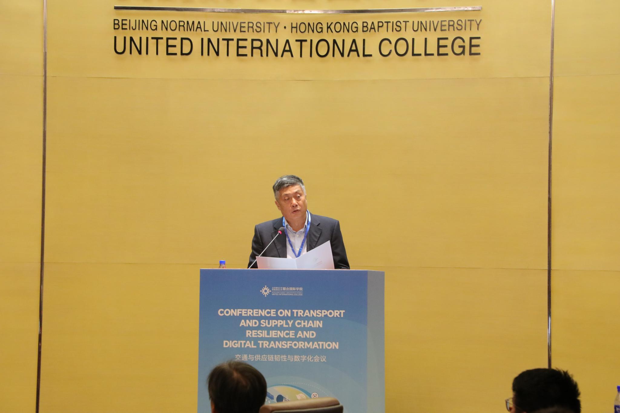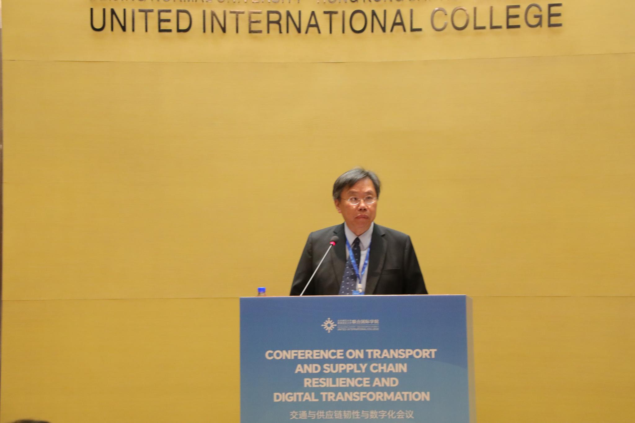 Following a welcome lunch, guests gathered in BNBU’s alluring Council Chamber, where the conference would be held. As the master of ceremony, Prof. Andy LIU introduced Prof. Patrick CHAU, BNBU Provost and Chair Professor; Prof. JIA Weijia, BNBU Vice President for Research and Development, Dean of Graduate School, and Chair Professor; and Prof. Adolf NG, Acting Dean of the Faculty of Business and Management as well as Chairman of the conference. In his opening remark, Prof. CHAU spoke of BNBU and its remarkable achievements within its brief history. Next, Prof. JIA described the rapid research developments and resources the college has undergone and acquired recently. Finally, Prof. NG announced the purpose of the conference: to explore and quantify the risks and to develop a rational planning methodology for the resilience of transport systems, as well as to develop new theoretical and methodological frameworks in the research of transport and supply chain resilience in a world of digital transformation.