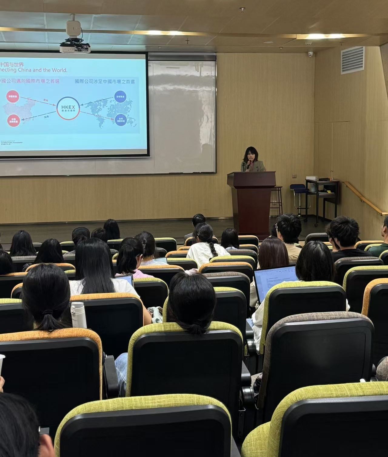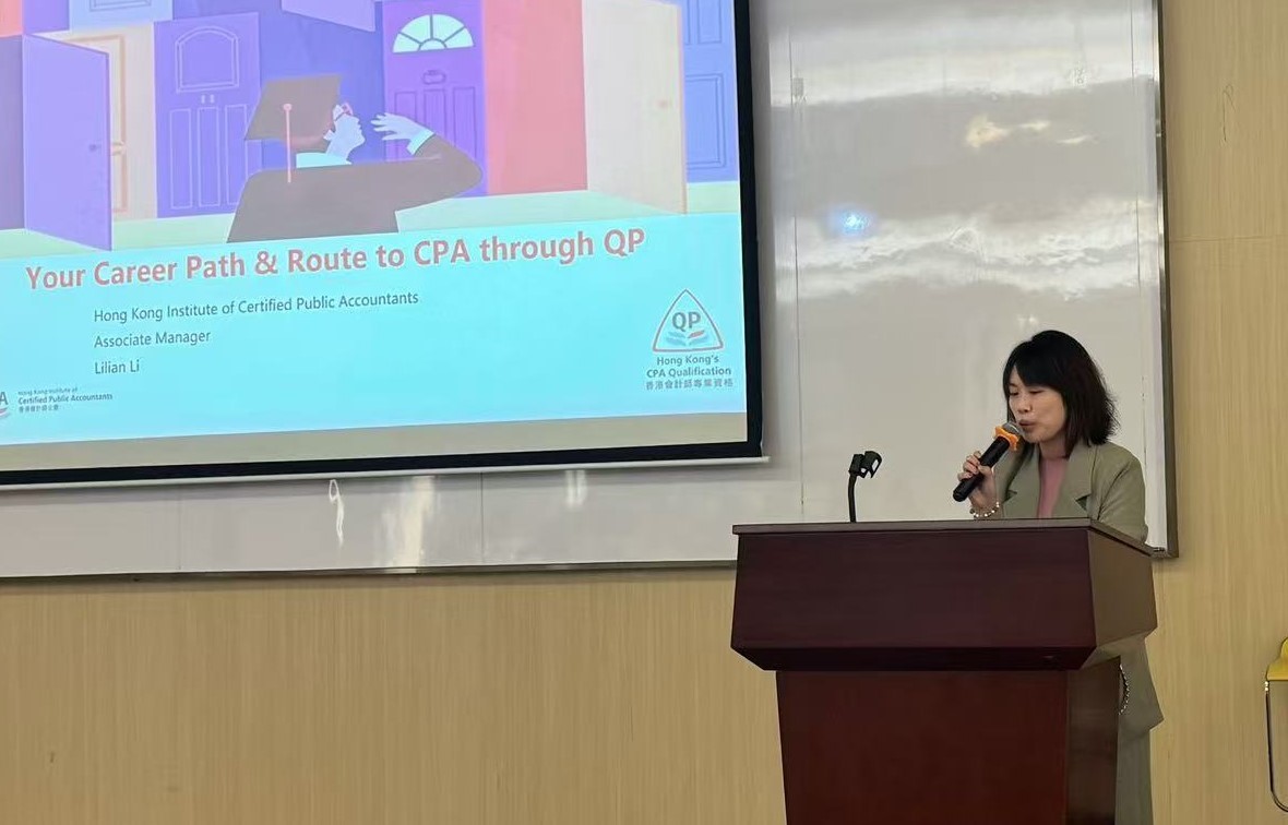 讲座中,李莹女士详细介绍了香港会计师公会的多个方面,包括香港公会会计师的职业发展路径,QP专业资格课程的具体介绍,以及QP和中国注册会计师以及澳大利亚注册会计师资格证的互认情况。她鼓励同学们积极参与香港注册会计师的专业资格考试,以开拓更广阔的职业发展空间。
