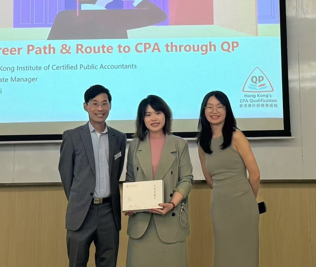 During the lecture, Ms. Li Ying introduced various aspects of the HKICPA, including the career development path of Hong Kong Institute accountants, a detailed introduction to the QP professional qualification courses, and the mutual recognition of QP with the Chinese Certified Public Accountants and Australian Certified Public Accountants qualifications. She encouraged students to actively participate in the professional qualification examination of Hong Kong Certified Public Accountants to open up broader career development space.