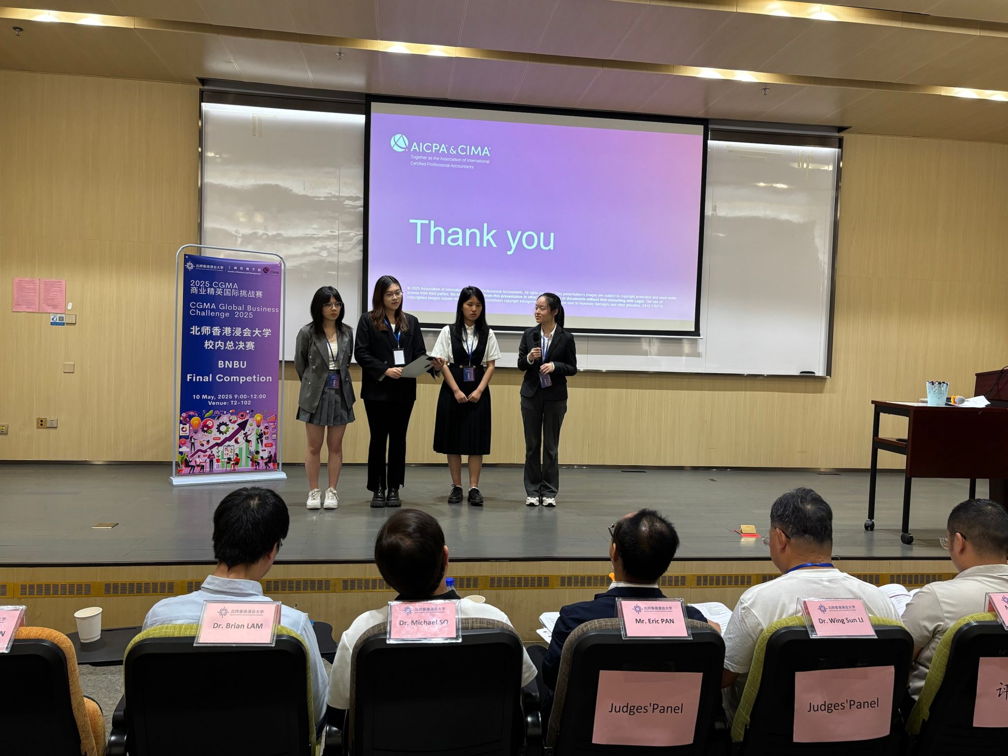 On the morning of May 10, 2025, the CGMA Global Business Challenge campus finals commenced at BNBU's T2-102 lecture theatre. Hosted by the Association of International Certified Professional Accountants (AICPA & CIMA), this prestigious global competition - marking BNBU's debut participation - has attracted considerable attention across campus since its launch in April. The Department of Accounting executed comprehensive preparations, including a special case analysis workshop conducted by Dr. Wingsun Li, former Chairman of CIMA North Asia. Faculty members from the Accounting Department served as advisors, offering comprehensive guidance to student teams throughout the competition. Their support covered every critical aspect—from structuring persuasive business reports to refining dynamic presentation skills—ensuring students were fully prepared to excel at every stage.