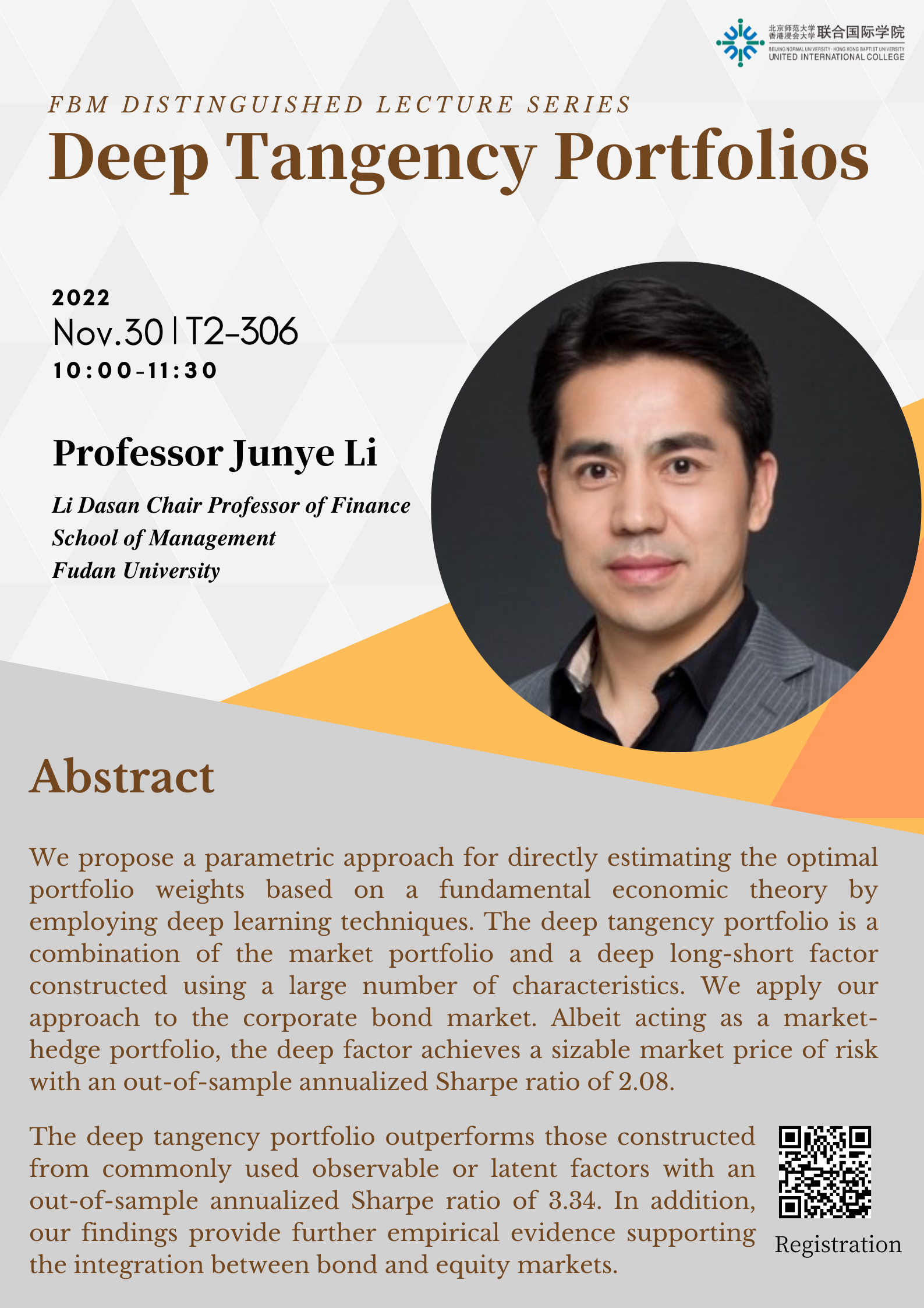 基于基本经济学理论,利用深度学习技术,我们提出了一种直接估计最优投资组合权重的参数化方法。深度切线投资组合是市场投资组合和利用大量特征构造的深度多空因子的组合。我们将我们的方法应用于公司债券市场。尽管作为一个市场对冲投资组合,深度因子实现了相当大的市场风险溢价,样本外的年化夏普比率为2.08。深度优化投资组合的表现优于那些由常用的可观察或潜在因子构建的投资组合,其样本外年化夏普比率为3.34。此外,我们的研究结果为债券和股票市场的整合提供了进一步的实证证据。