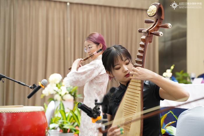 Students also put in excellent performances after the sharing sessions. Year 3 Management of Human Resources student Jiadian Sui and Year 2 Applied Translation Studies student Qianqi Ma presented a musical performance called ‘The Deep Night’. Qianqi Ma then joined Year 1 Accounting student Fengyuan Gao as well as Year 3 Media Arts and Design student Yiwei Zhao to perform ‘The Reason Why’.