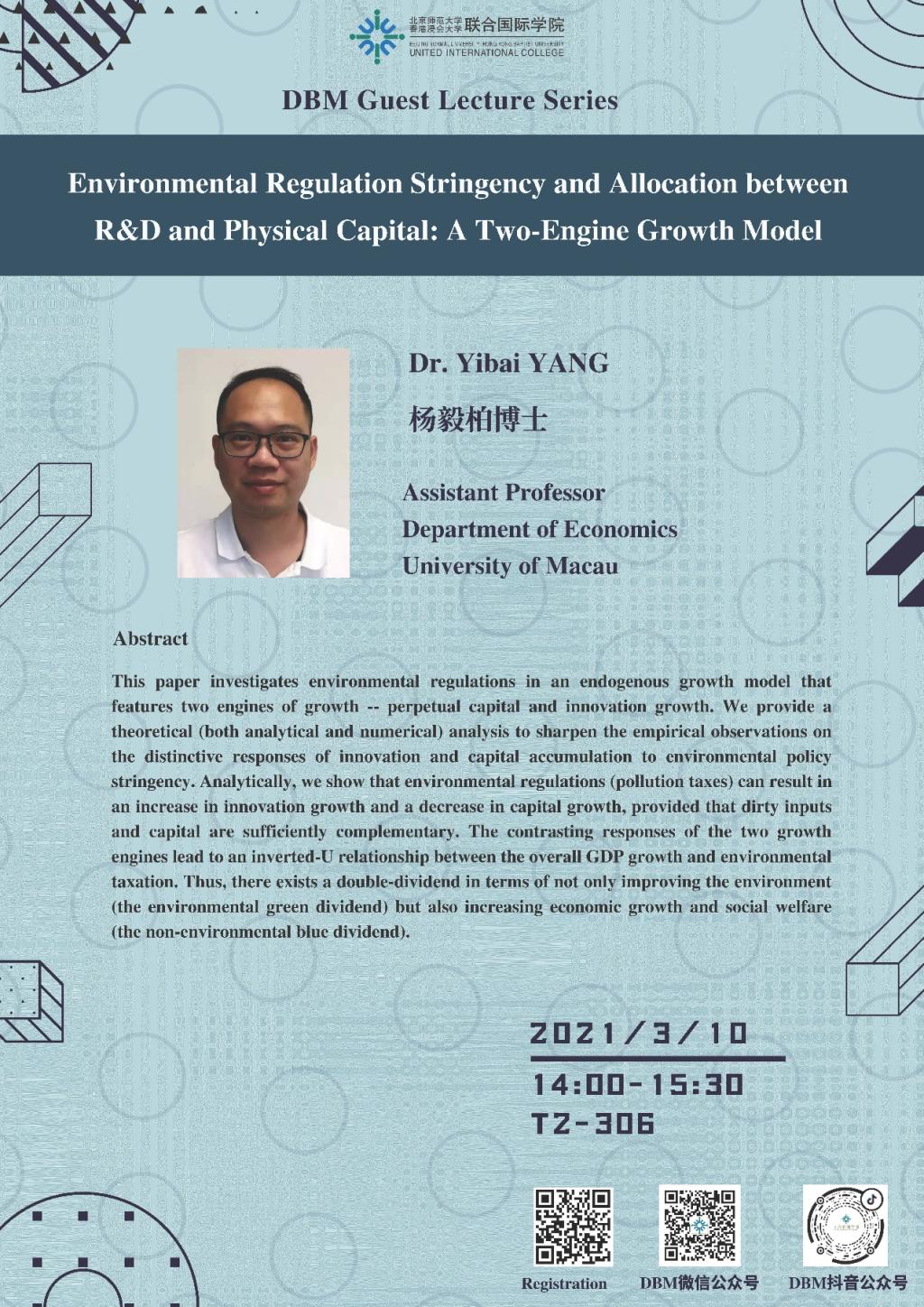 10 March 2021 - DBM Guest Lecture Series #2_Environmental Regulation Stringency and Allocation between R&D and Physical Capital: A Two-Engine Growth Model