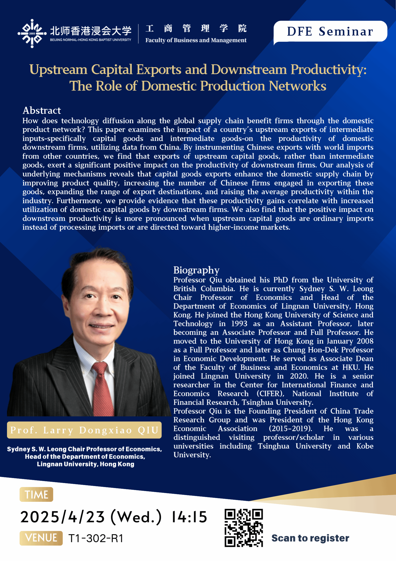 2025年4月23日 - DFE研讨会 - 上游资本商品出口与下游生产力:国内生产网络的作用