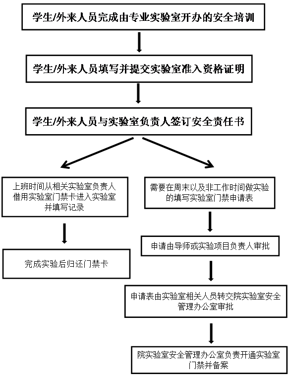 学生/外来人员获取实验室准入资格和申请进入实验室流程图