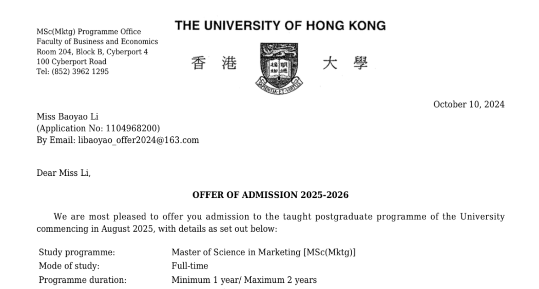 本科专业×硕士项目精准对接!市场营销管理2025届陈炣、李宝瑶双星闪耀,斩获香港大学市场营销学硕士提前批双录取!她们的成长路径,为市场营销学子提供了怎样的启示?快来一探究竟!