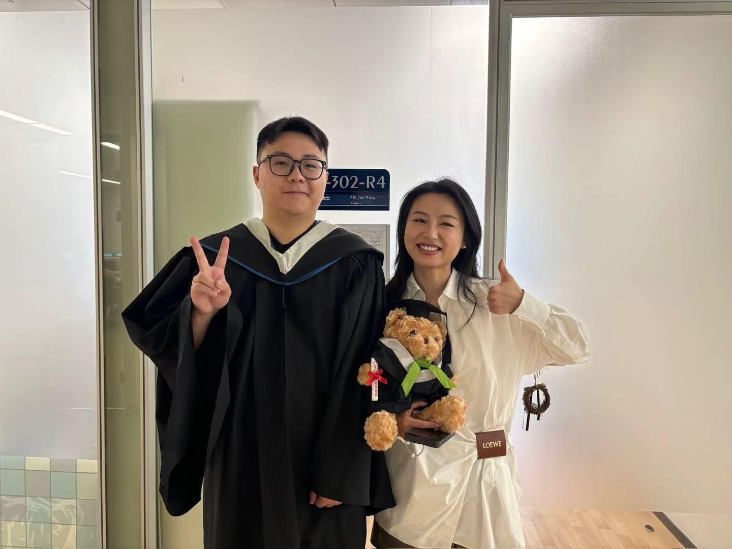 王俊程(右二)参加毕业答辩,与导师黄涛老师(右一)合影