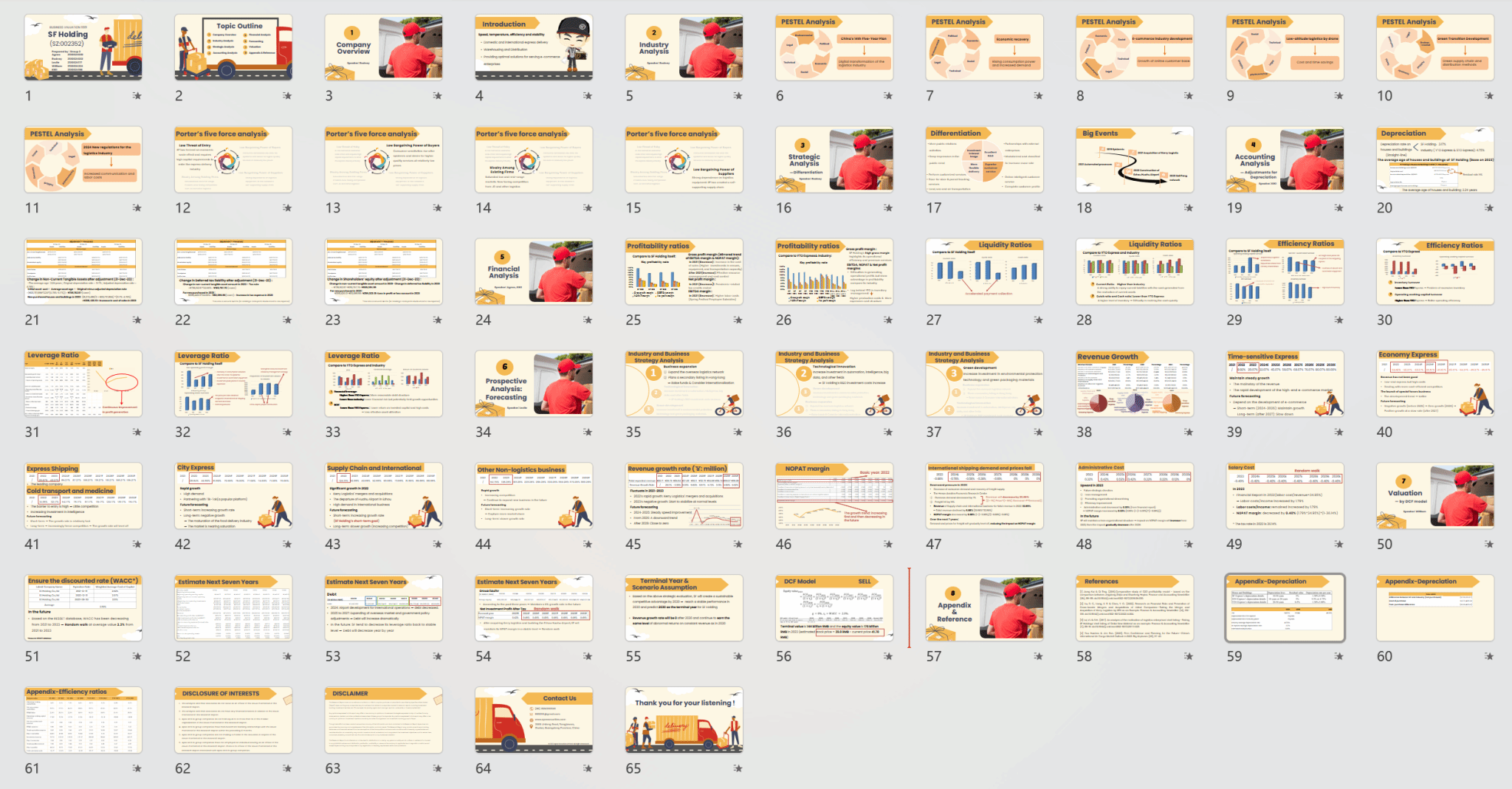 在课程项目中,我们小组选择了顺丰速运作为研究对象。从行业与公司层面出发,我们结合了战略分析、波特五力模型、PESTEL分析等工具,深入剖析公司的运营环境与核心竞争力。在此基础上,我们构建了财务模型并进行估值,最终得出一个我们认为合理的目标股价。