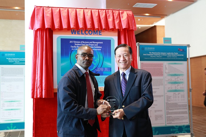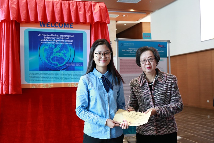 为庆祝UIC新校园启动,2017工商管理学部(简称DBM)学生毕业论文及教师研究成果海报展于12月4日开幕。本次海报展不仅展出了25位2017届 毕业生的优秀毕业论文,同时还展出了15位DBM老师的科研成果。开幕仪式于12月4日在行政楼二楼大堂举行,吴清辉校长和DBM院长左龙佩兰教授共同揭幕。