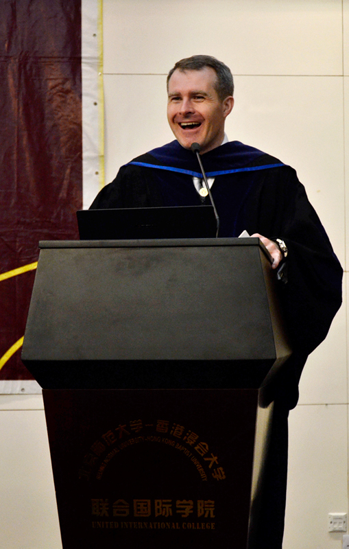 出席剪彩仪式的香港会计师公会会长包凯先生(Mr. Keith Pogson)在致辞中,祝贺UIC设立中国内地第一个QP课程资源中心。 包凯先生介绍,香港会计师公会是全球会计联盟 (Global Accounting Alliance) 创会成员之一,并与全球八个主要国家及地区的特许会计师(Chartered Accountants) 组织签订相互会籍认可协议。此外,公会与代表美国会计师公会(AICPA)及美国国家会计委员会全国联合会(NASBA)的美国国际资格评估委员会 (IQAB)签订相互认可协议。凭此优势,完成QP的公会会员,可更容易地取得在全球五大洲, 即亚洲,北美洲,欧洲,非洲和澳大利亚的会籍及执业资格。包会长还介绍,香港会计师公会会员和QP毕业生可获豁免中国注册会计师全国统一考试的其中四门考 试。