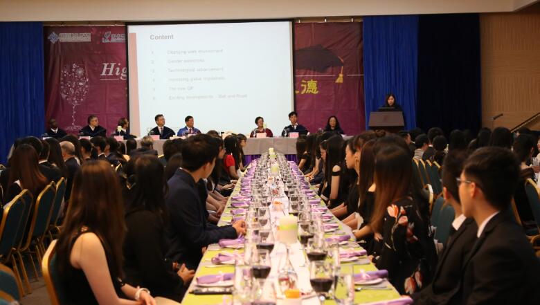 香港会计师公会副会长、安永合伙人及审计部副主管(香港及澳门)罗富源先生和香港会计师公会执行总监伍大成先生,以及校长吴清辉教授、教务长李建会教授、财务规划及发展执行总裁陈立信先生、工商管理学部署理副院长Uchenna EZE博士及助理院长梁淑馨博士作为高桌嘉宾出席了本次晚宴。