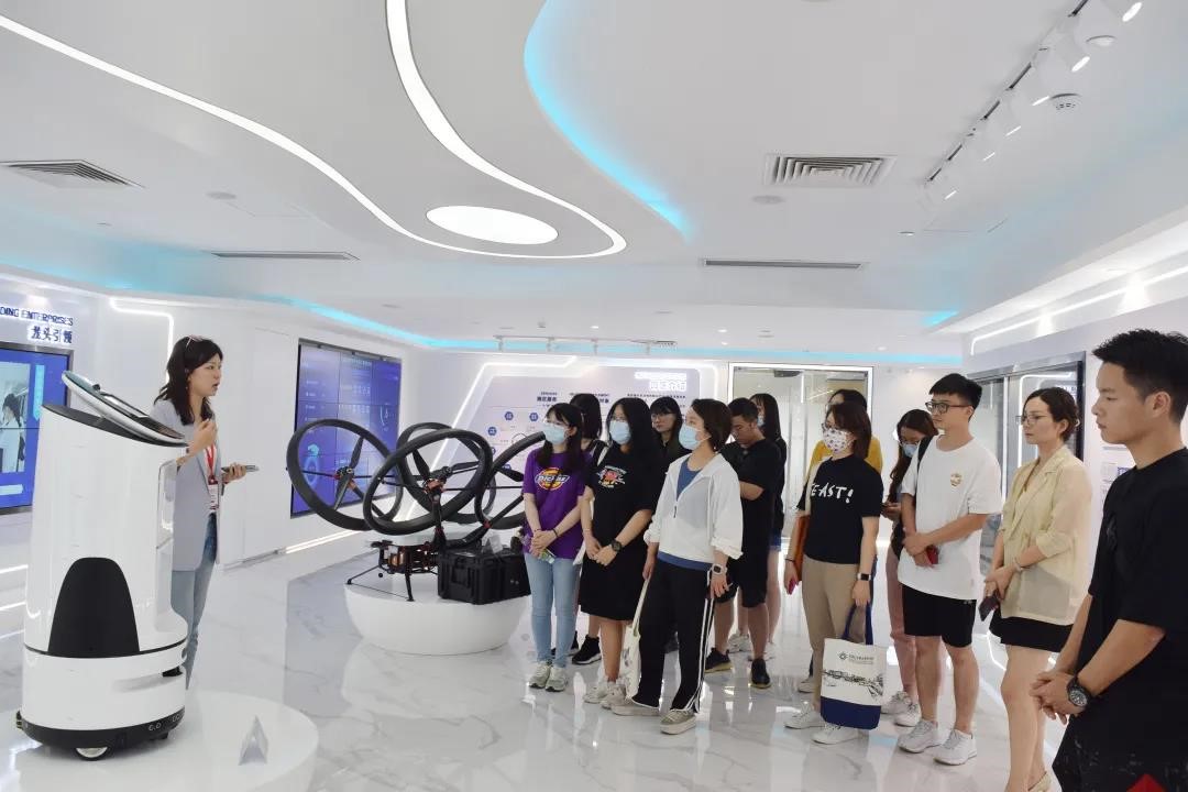 在园区工作人员的带领和介绍下,UIC工商管理学部师生一行参观了腾讯云启创新中心(珠海)、云溪谷数字产业园智慧展厅。园区龙头企业的最新“黑科技”、独角兽种子企业的“硬核”研发成果,包括目前知识产权申请数量全球第一的双捷科技的系留无人机,可实现商业楼宇全场景服务覆盖的派宝智能的“派宝机器人(PadBot)等前沿科技,这些先进的产业信息共同拼搭出一份诱人的“科技盛宴”。