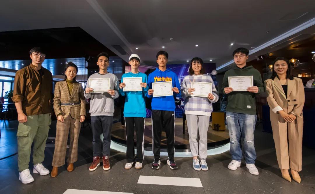 校外评委陈墨(左一)、钟慧(左二)、湛荔(右一)为最佳创意奖获得者颁奖