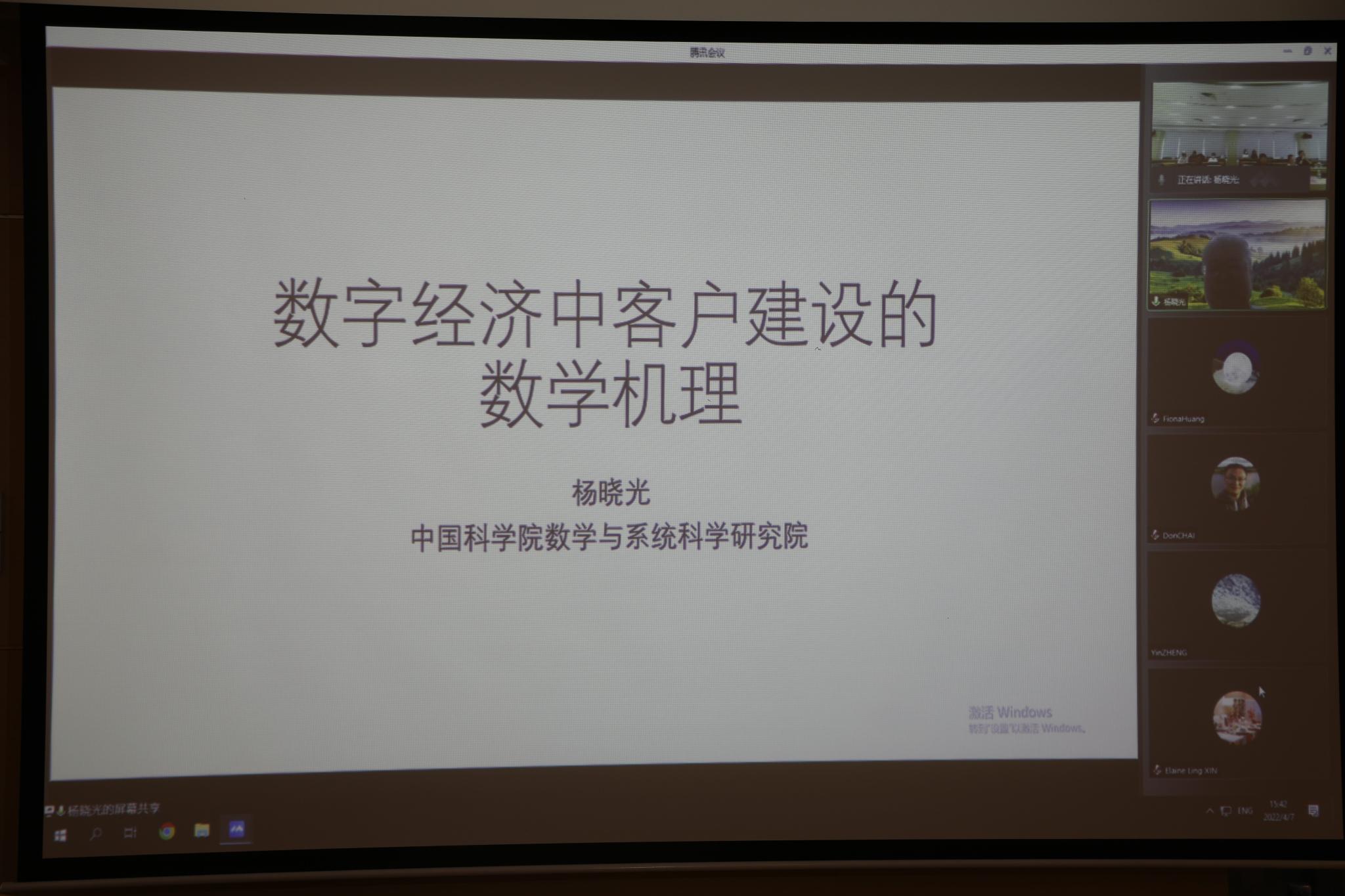 2022年4月7日下午,北师港浸大荣幸邀请到中国科学院数学与系统科学研究院研究员杨晓光教授,为师生带来主题为“数字经济中客户建设的数学机理”的线上分享会,为疫情管控之下的DBM阅读周注入积极学习的正能量。