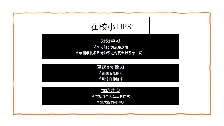 3)表达能力:重视Pre机会,培养汇报能力和合作精神。