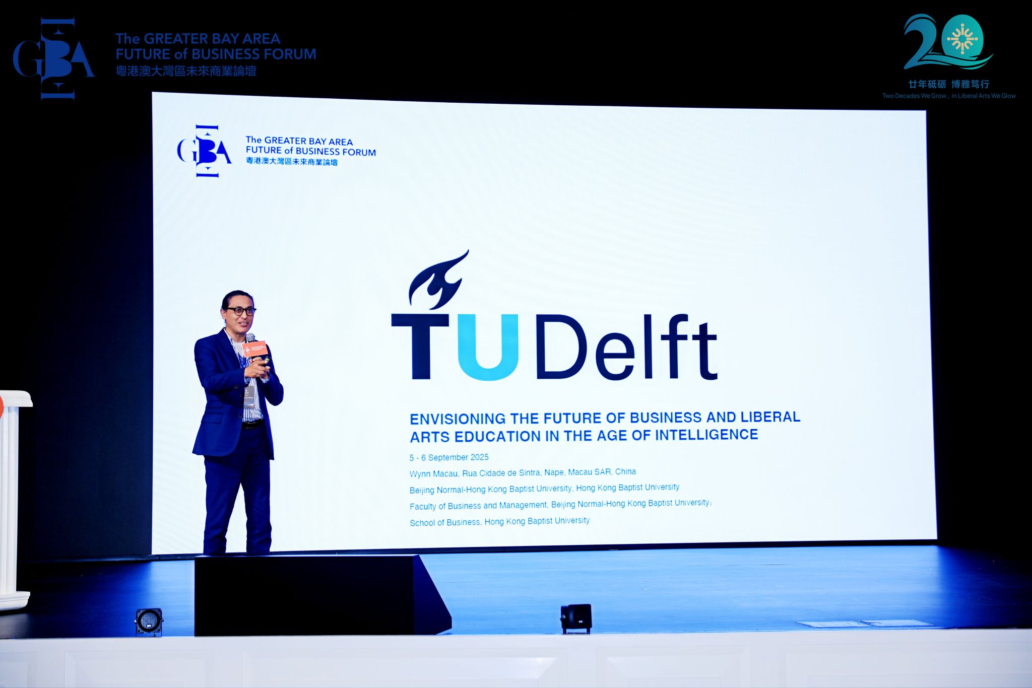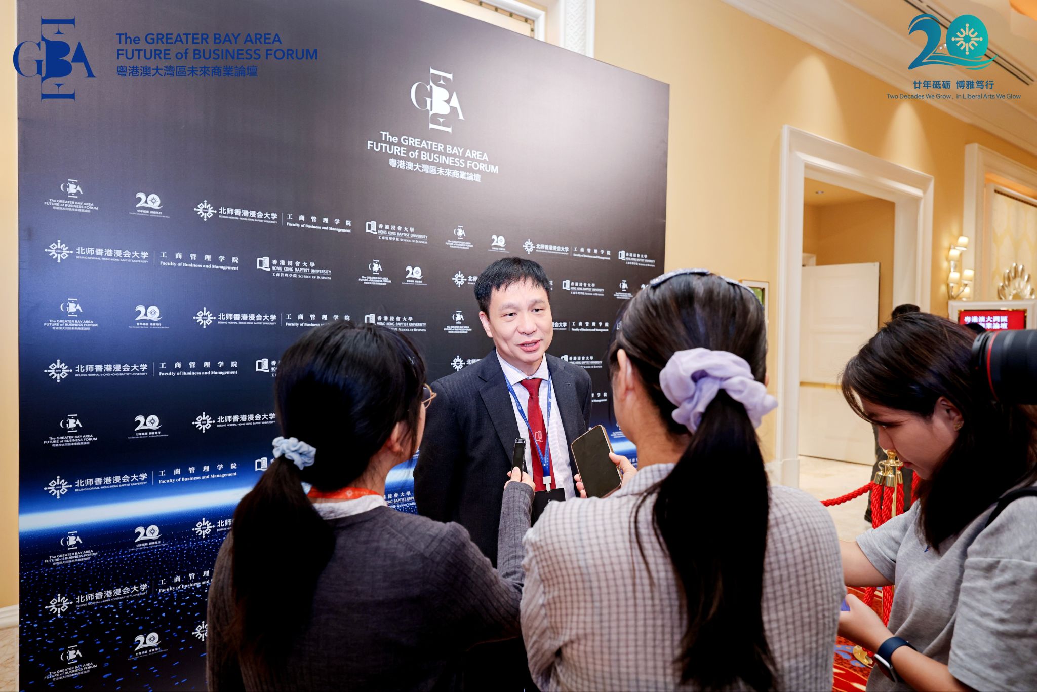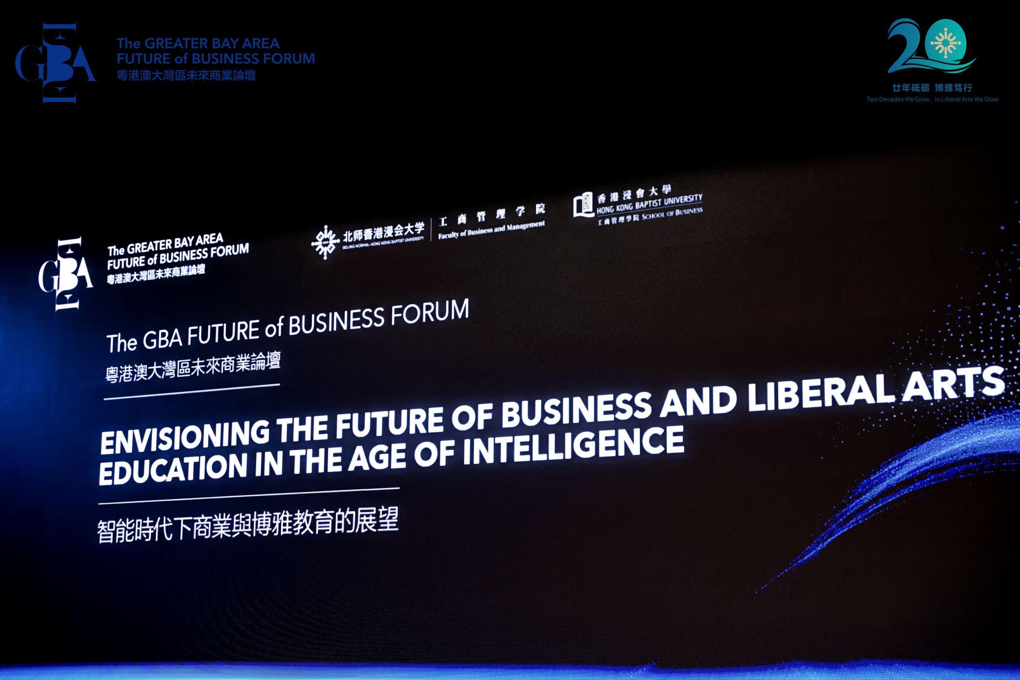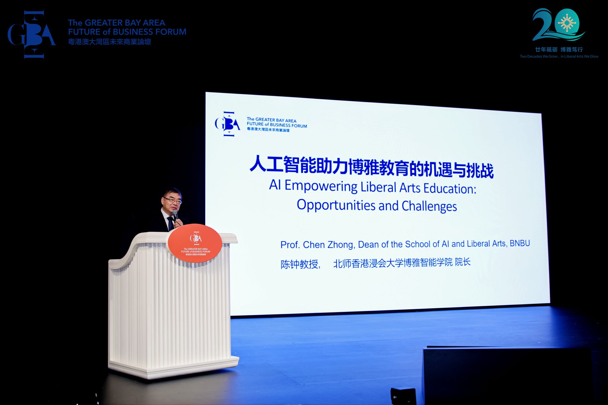 论坛由北师香港浸会大学(BNBU,以下简称“北师港浸大”)与香港浸会大学(HKBU,以下简称“浸大”)联合举办、两校工商管理学院携手承办,以“智能时代下商业与博雅教育的展望”为主题,聚焦智能时代的商业、行业发展、商科教育与研究三大核心命题。