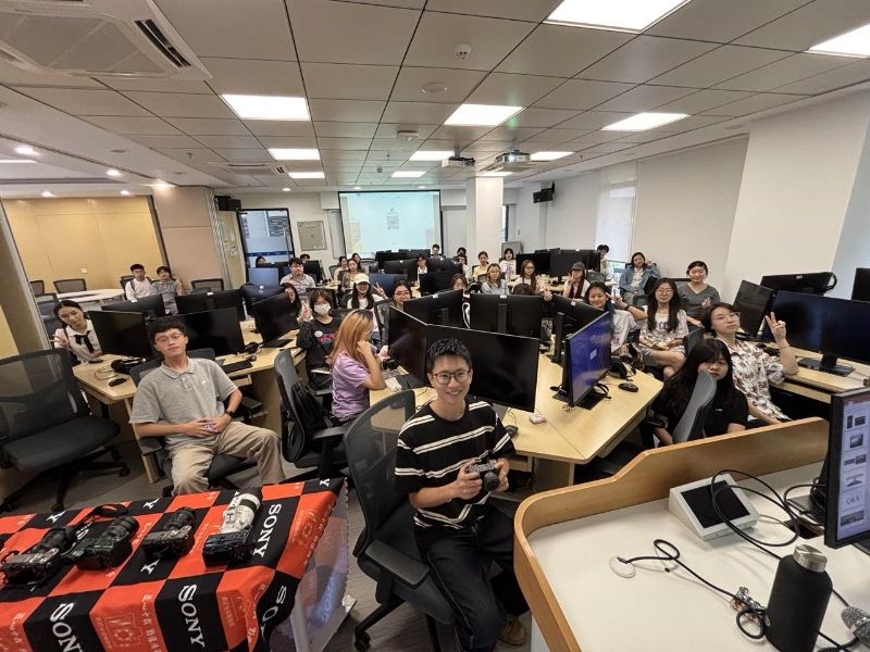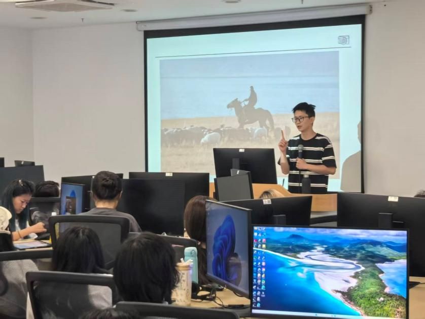 文化与创意学院影像创作中心负责人饶锐灵先生也为同学们带来了一场以“影像创作基础”为主题的工作坊。他详细讲解了视频创作的全流程,包括如何审题、脚本设计、前期准备、合理构图以及镜头运动等关键环节。同时,他还通过展示多个优秀案例,与学生们深入探讨了拉片技巧、剪辑思路和声音设计等专业内容。