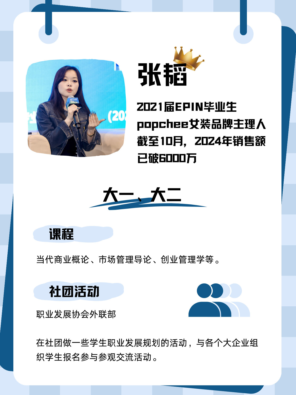 创业:张韬,2021届创业与创新管理(EPIN)毕业生,popchee女装品牌主理人