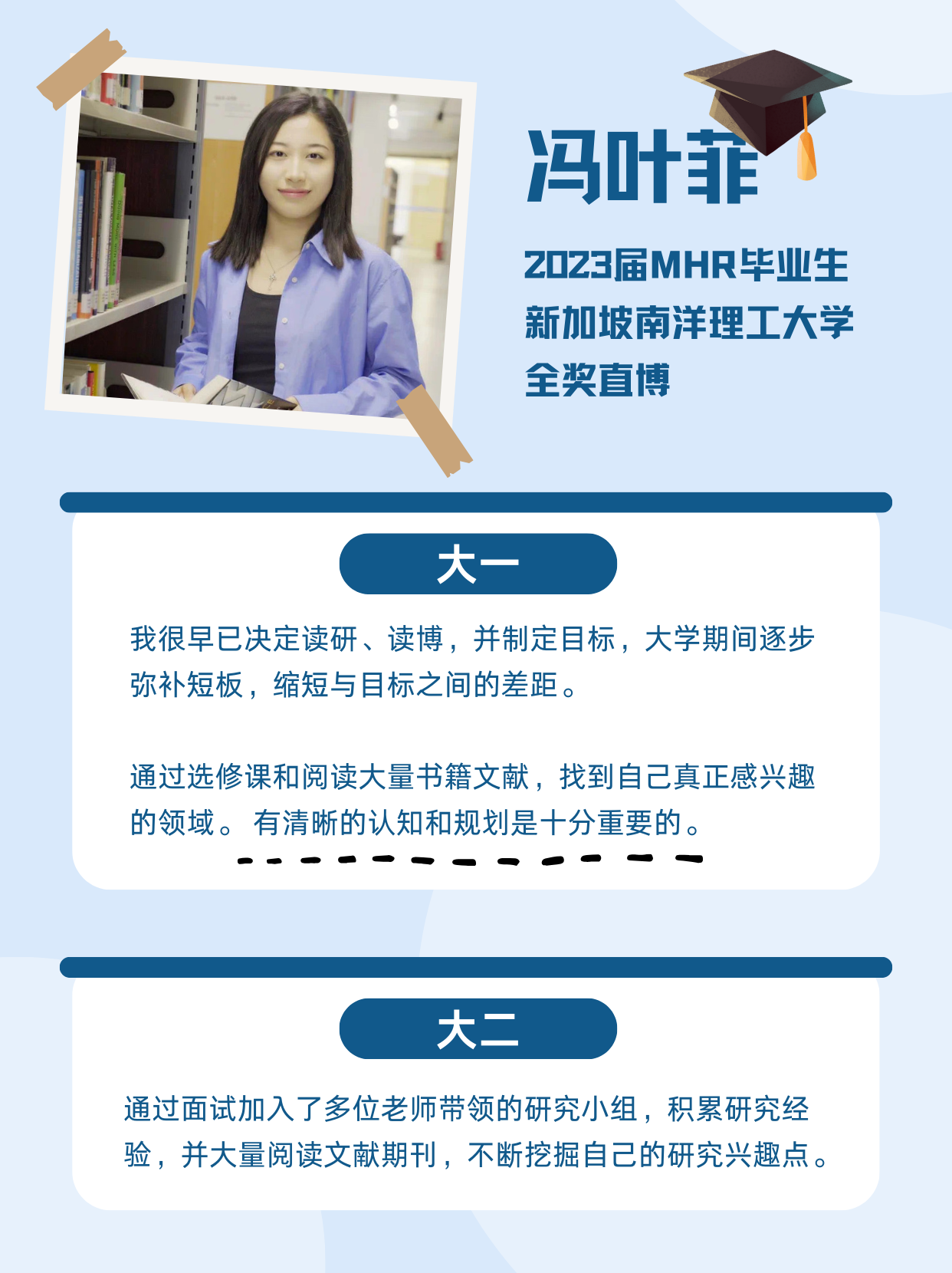 读博:冯叶菲,2023届人力资源管理(MHR)毕业生,南洋理工大学 全奖直博