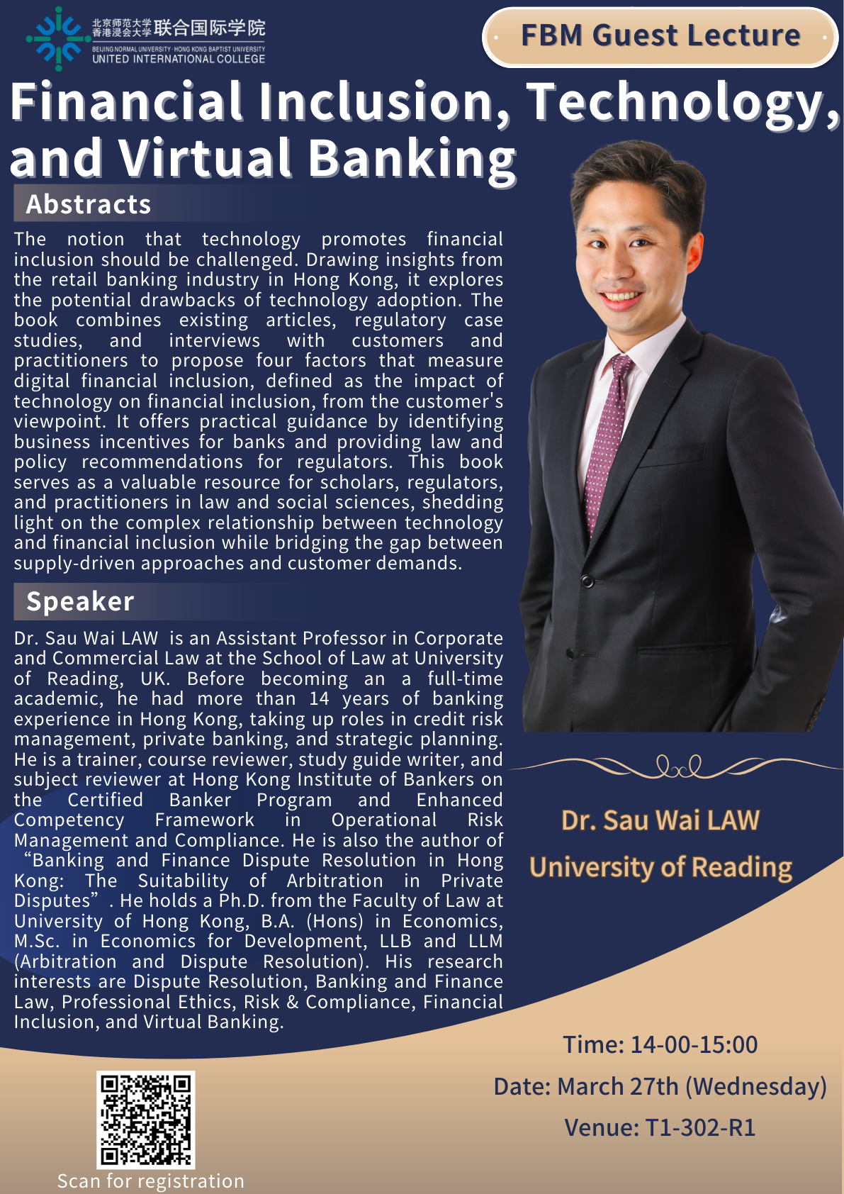 罗修慧博士(Samuel)是英国雷丁大学法学院公司法和商法助理教授。在成为全职学者之前,他在香港拥有超过 14 年的银行工作经验,曾担任信贷风险管理、私人银行和战略规划等职务。他是香港银行学会的培训师、课程评审员、学习指南撰写人,以及注册银行家课程和运营风险管理与合规强化能力框架的科目评审员。他还著有《香港银行与金融纠纷解决:私人纠纷中仲裁的适用性》一书。他拥有香港大学法律系博士学位、经济学荣誉学士学位、发展经济学理学硕士学位、法学学士学位和法学硕士学位(仲裁与争议解决)。他的研究兴趣为争议解决、银行与金融法、职业道德、风险与合规、普惠金融和虚拟银行。