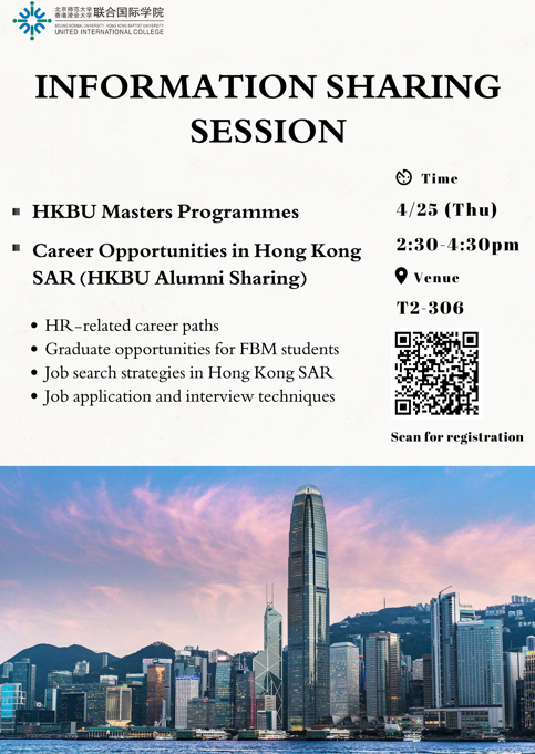 诚挚邀请您参加由工商管理学院(FBM)管理系(DM)主办的信息分享会:香港浸会大学硕士课程与香港特别行政区职业发展机会(香港浸会大学校友分享).