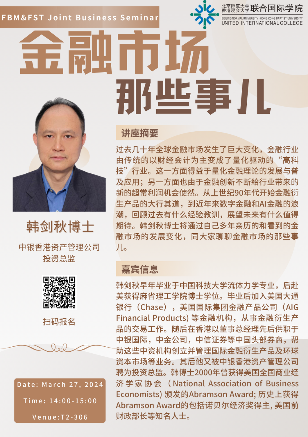 过去几十年全球金融市场发生了巨大变化,金融行业由传统的以财经会计为主变成了量化驱动的“高科技”行业。这一方面得益于量化金融理论的发展与普及应用;另一方面也由于金融创新不断給行业带来的新的超常利润机会使然。从上世纪90年代开始金融衍生产品的大行其道,到近年来数字金融和AI金融的浪潮,回顾过去有什么经验教训,展望未来有什么值得期待。韩剑秋博士将通过自己多年亲历的和看到的金融市场的发展变化,同大家聊聊金融市场的那些事儿。