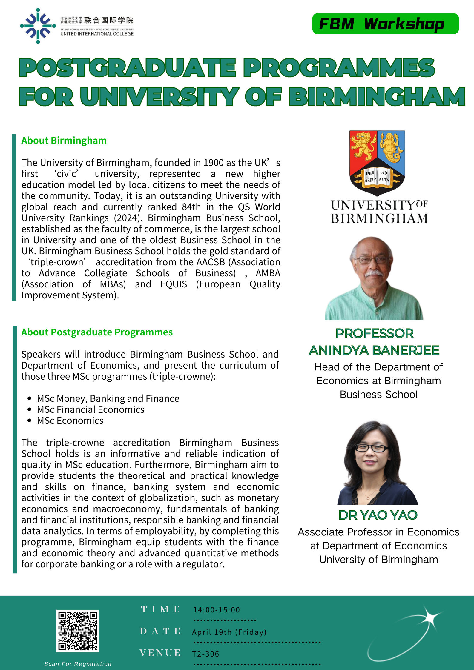 主讲人将介绍伯明翰大学商学院和经济系,并介绍这三个理学硕士课程(三冠王)的课程设置: