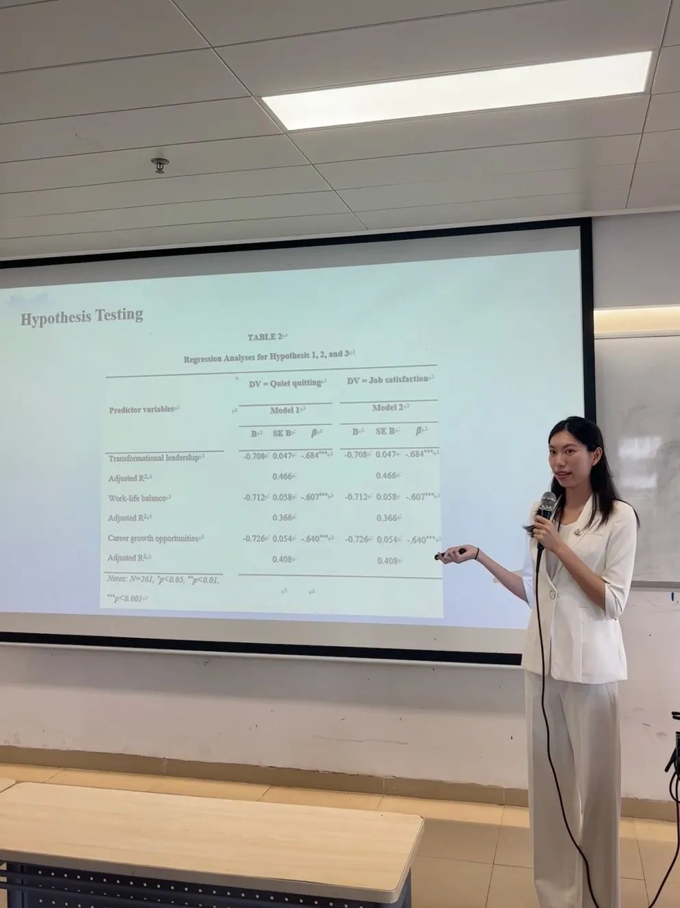 这次经历,让我对课堂所学的理论知识、实践中的培训体系有了更深的理解与思考。当小组成员查阅资料、构建理论框架时,我结合自己在AIA的所见所闻与大家分享,这比我们之前只是利用外部查阅资料做的分析更加鲜活、深入。这也给了我一个全新的视角——从“实习生”到“分析者”的转变。曾经,我只是在公司内部专注于手头的工作;而这一次,我站在不同的角度,用课堂理论重新回顾实习经历,将理论与实践相结合,发现了许多当时未曾注意的深层逻辑,让我有了更多不一样的见解。