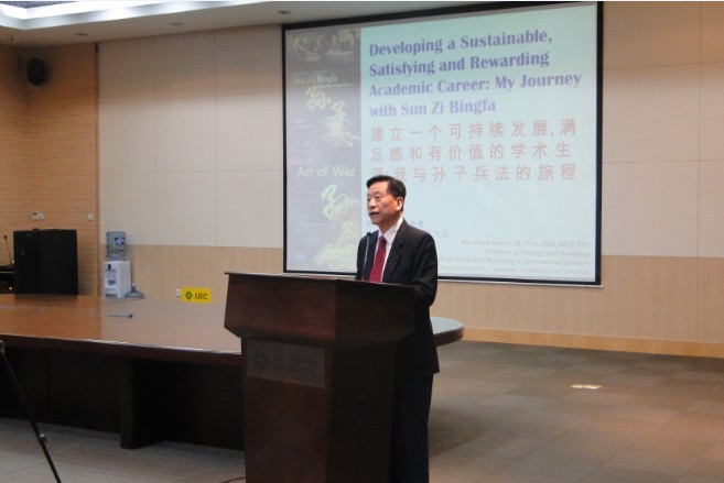 On 18 April, the guest speaker Prof.WEE Chow Hou gave a lecture to DBM students. The topic of this lecture is "Developing and Managing a Sustainable, Satisfying and Rewarding Academic Career: My Journey with Sun Zi Bingfa". In this talk, he not only shared why some of the thoughts of Sun Zi are so fascinating and relevant to the business world. He also shared how he has built a very satisfying and rewarding career around Sun Zi Bingfa, something that every academic an aspire to achieve as well.