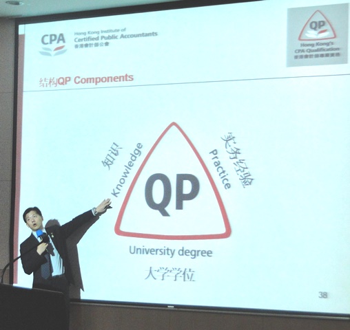 The talk included an overview of the accounting industry, an introduction to the HKICPA, how to become a CPA, and the structure and benefits of the HKICPA Qualification Programme.