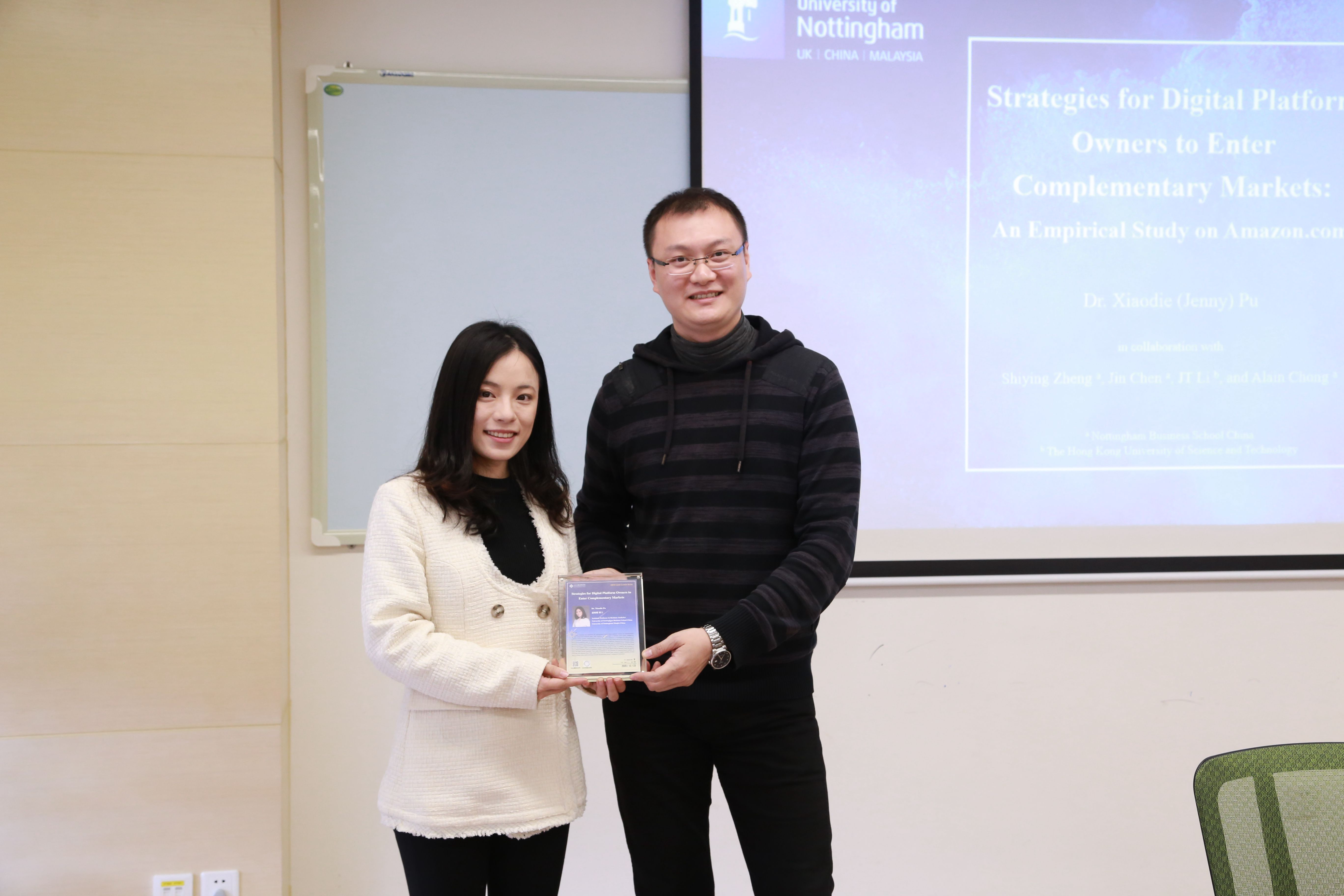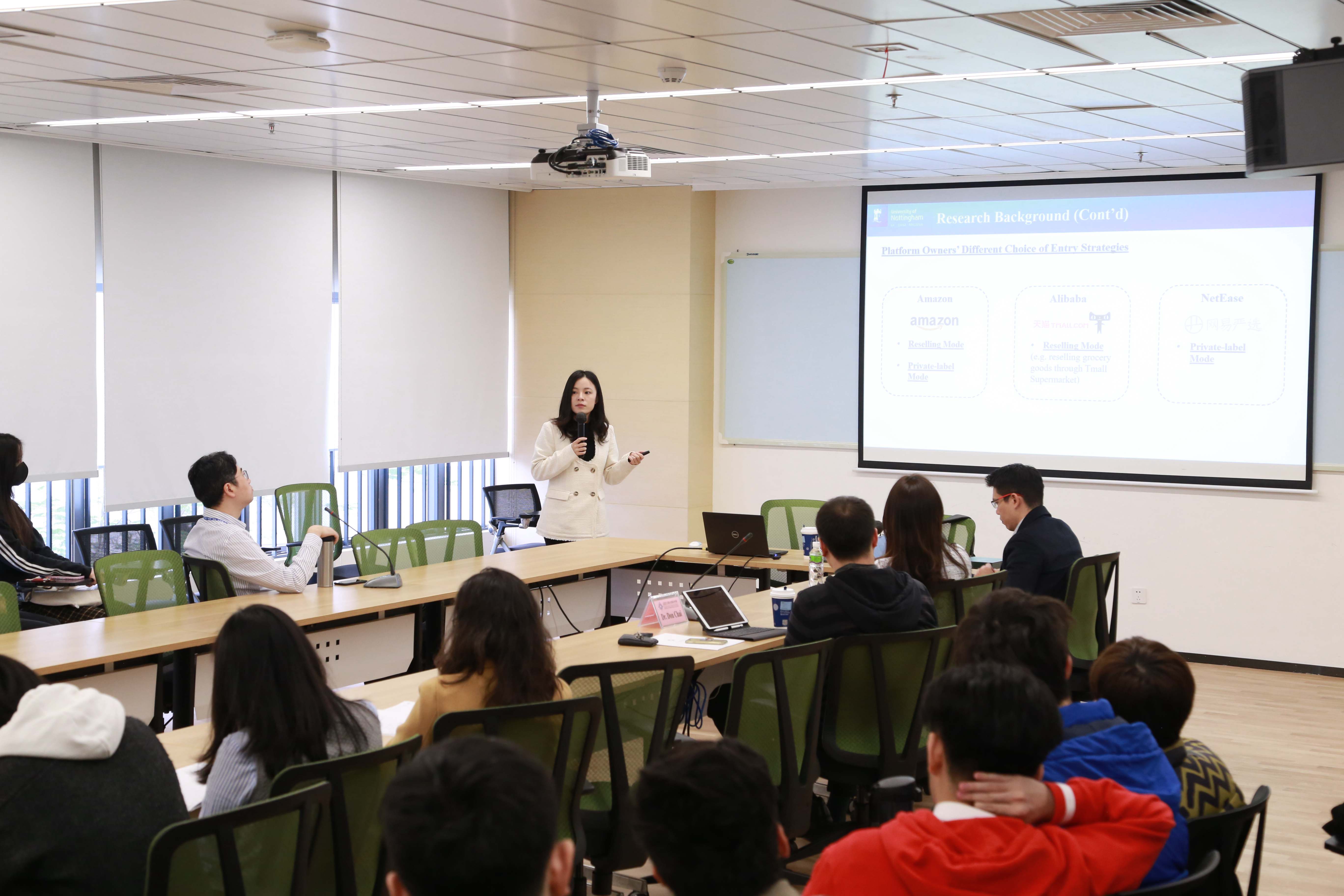 Dr. Xiaodie Pu delivered her lecture on “Strategies for Digital Platform Owners to Enter Complementary Markets” in the morning. Currently, she is an Assistant Professor in Business Analytics at University of Nottingham Business School China.