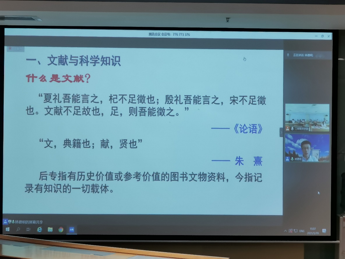 Dr. Lin started the lecture by introducing the concepts of literature and scientific knowledge. He systematically discussed “scientific knowledge” and the emergence of scientific knowledge, the “Gestalt” phenomenon of scientific research, Karl Popper’s "World 3" and Kuhn’s theories about the structure of scientific revolutions.