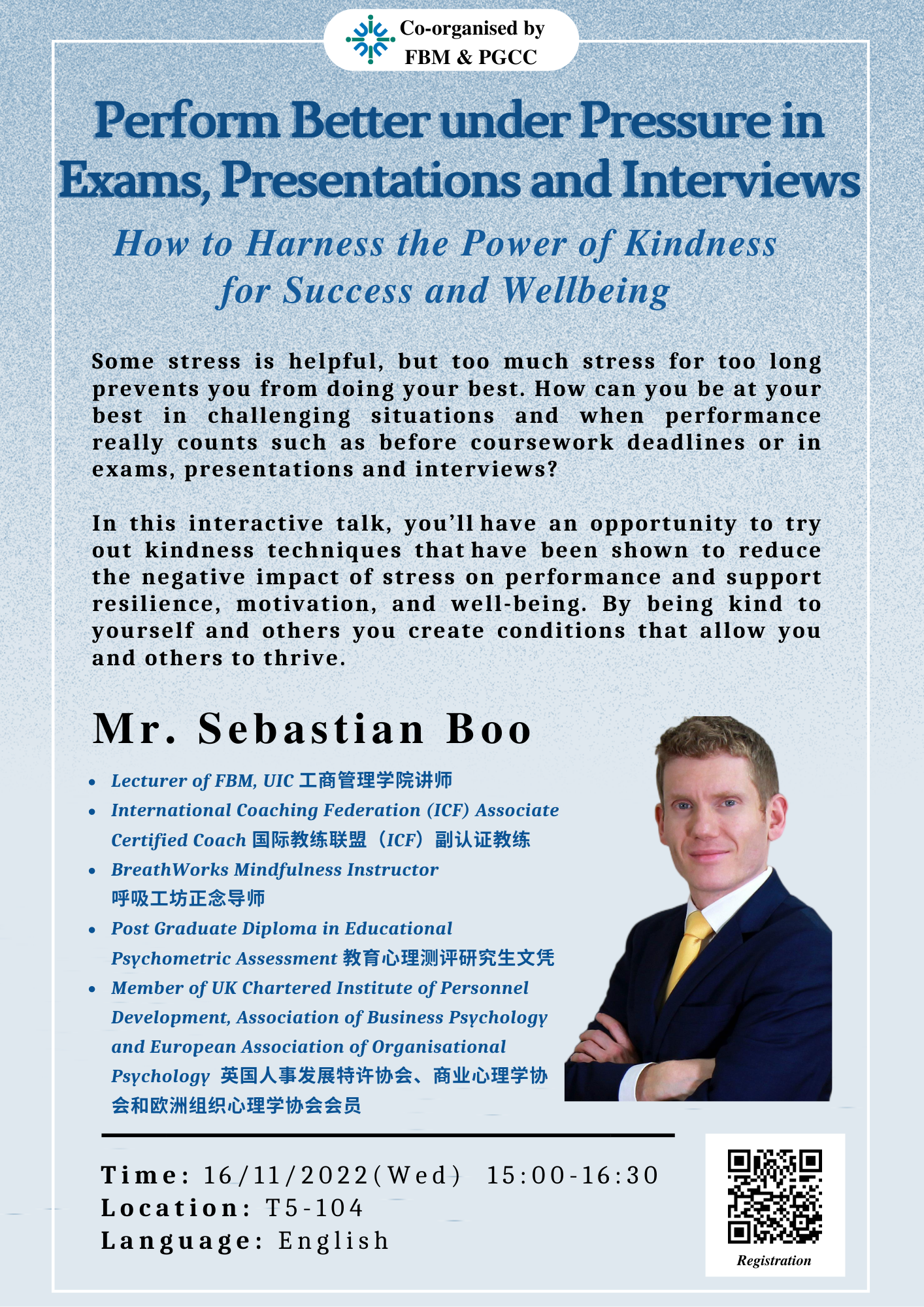 Some stress is helpful, but too much stress for too long prevents you from doing your best. How can you be at your best in challenging situation and when performance really counts such as before coursework deadlines or in exams, presentations and interviews?