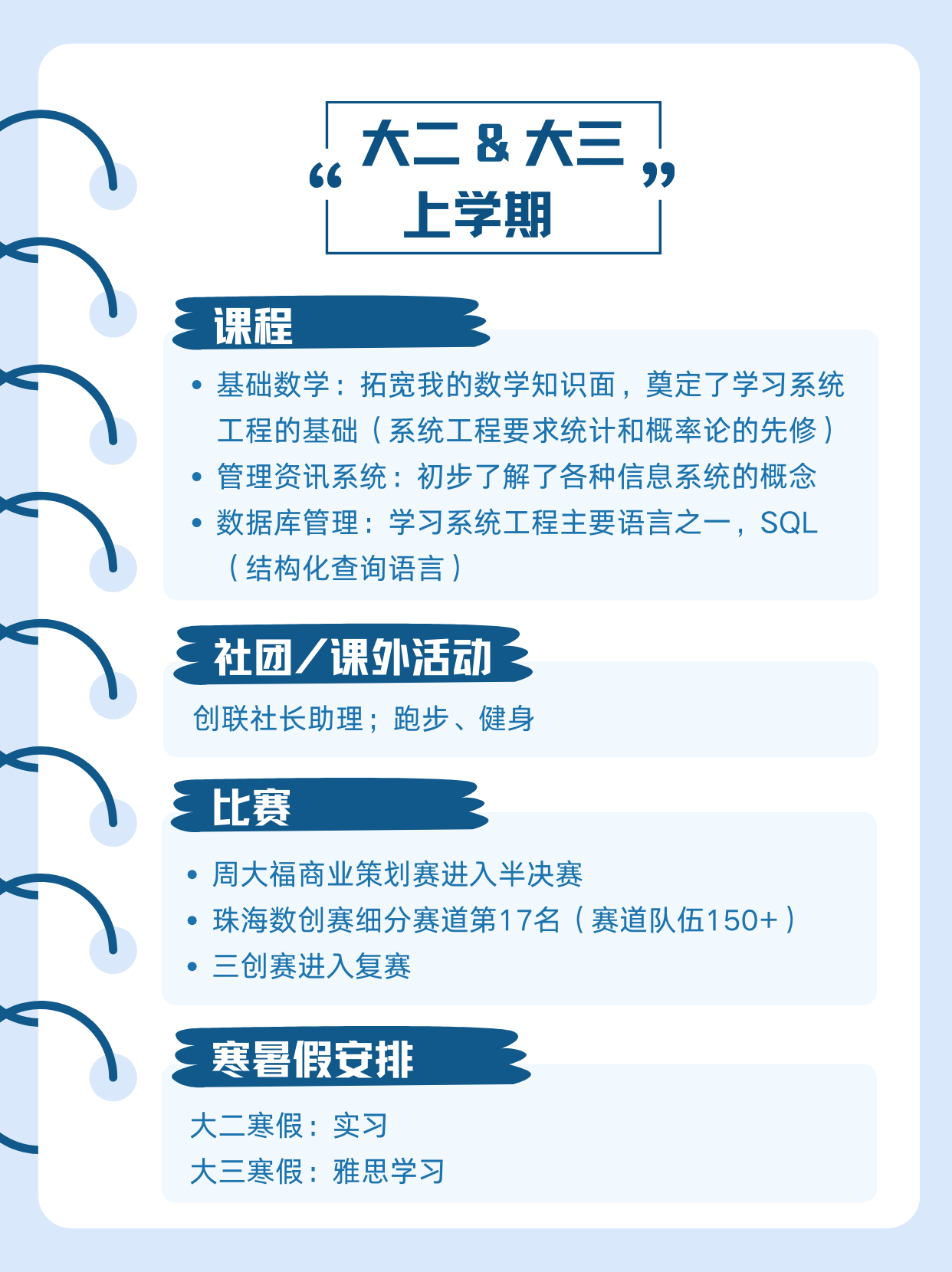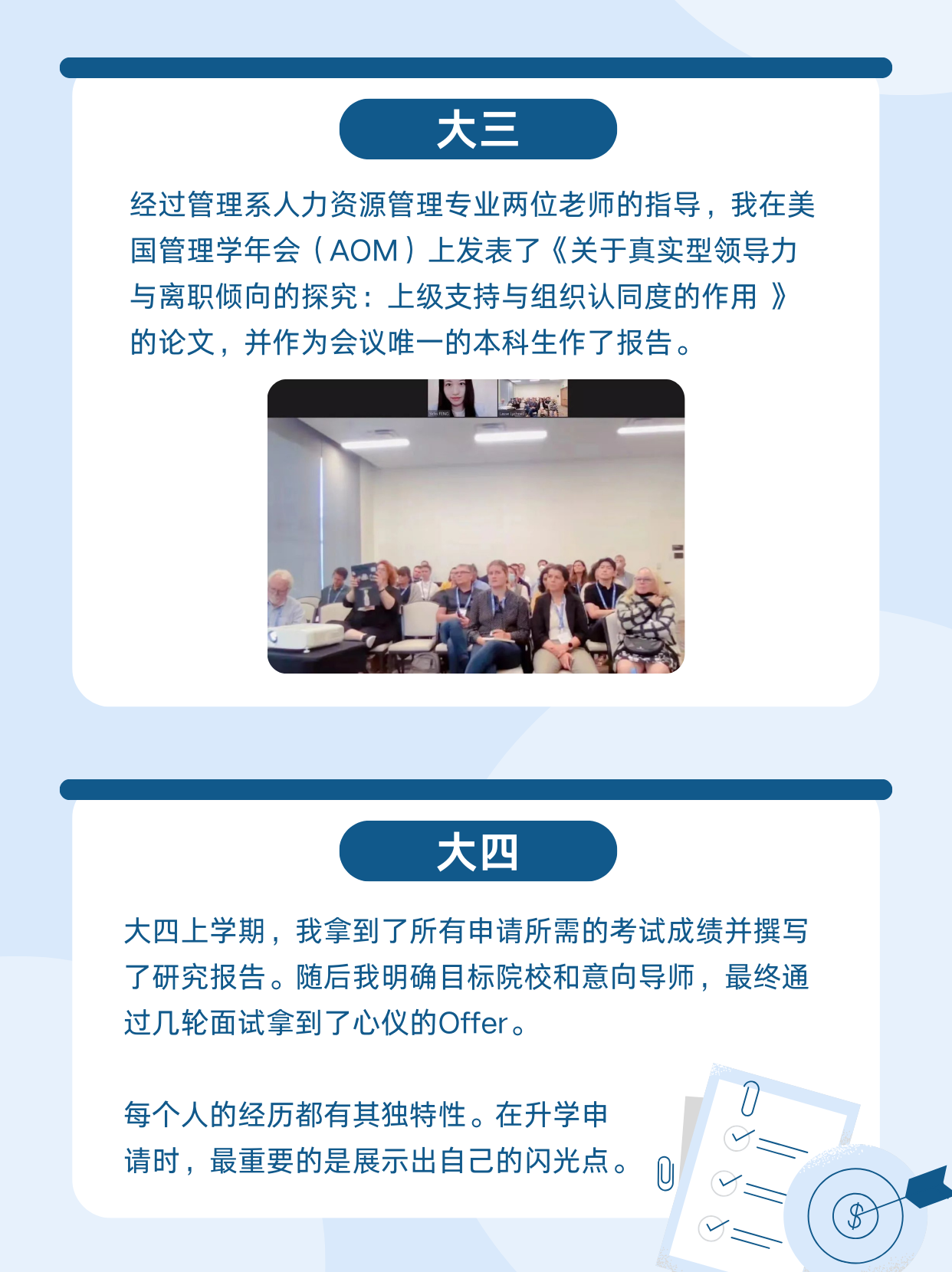 下面是四位来自管理系不同专业的毕业生,他们分别从各自的发展轨迹——读研、读博、就业以及创业的角度,回顾并梳理了自己的大学生活、重要的时间节点以及规划安排。诚然每个人的人生都无法简单地复制粘贴,但它山之石可攻玉,学长学姐走过的路也许可以为你的大学生涯提供一丝借鉴和启发。