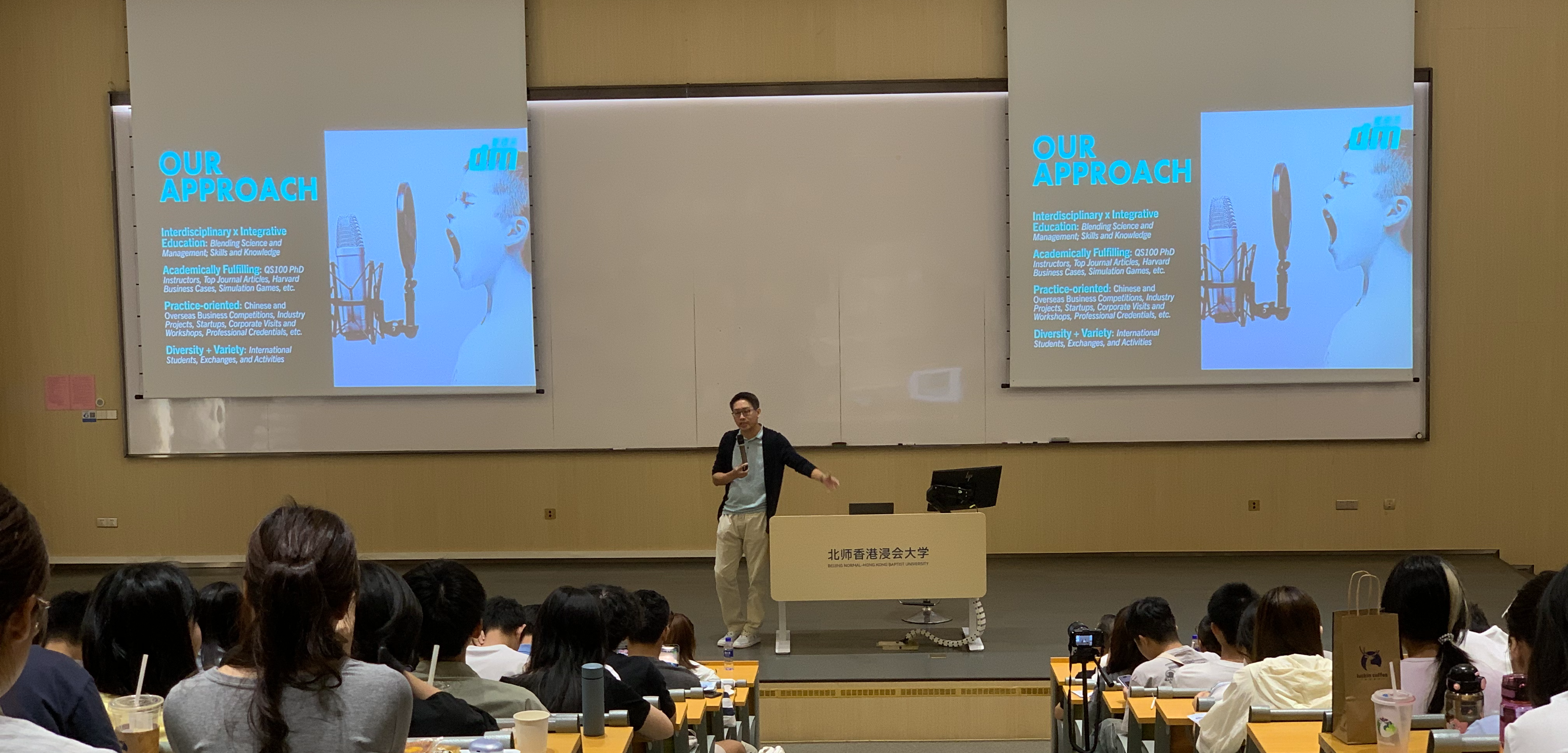 在新生大类专业分流宣讲会上,工商管理学院管理系系主任黄庆丰副教授和同学们分享了优秀毕业生大学四年的成长路径,他们如何度过自己的大学生涯,最终收获丰硕的成果,这样的故事引起了在场同学们的浓厚兴趣。