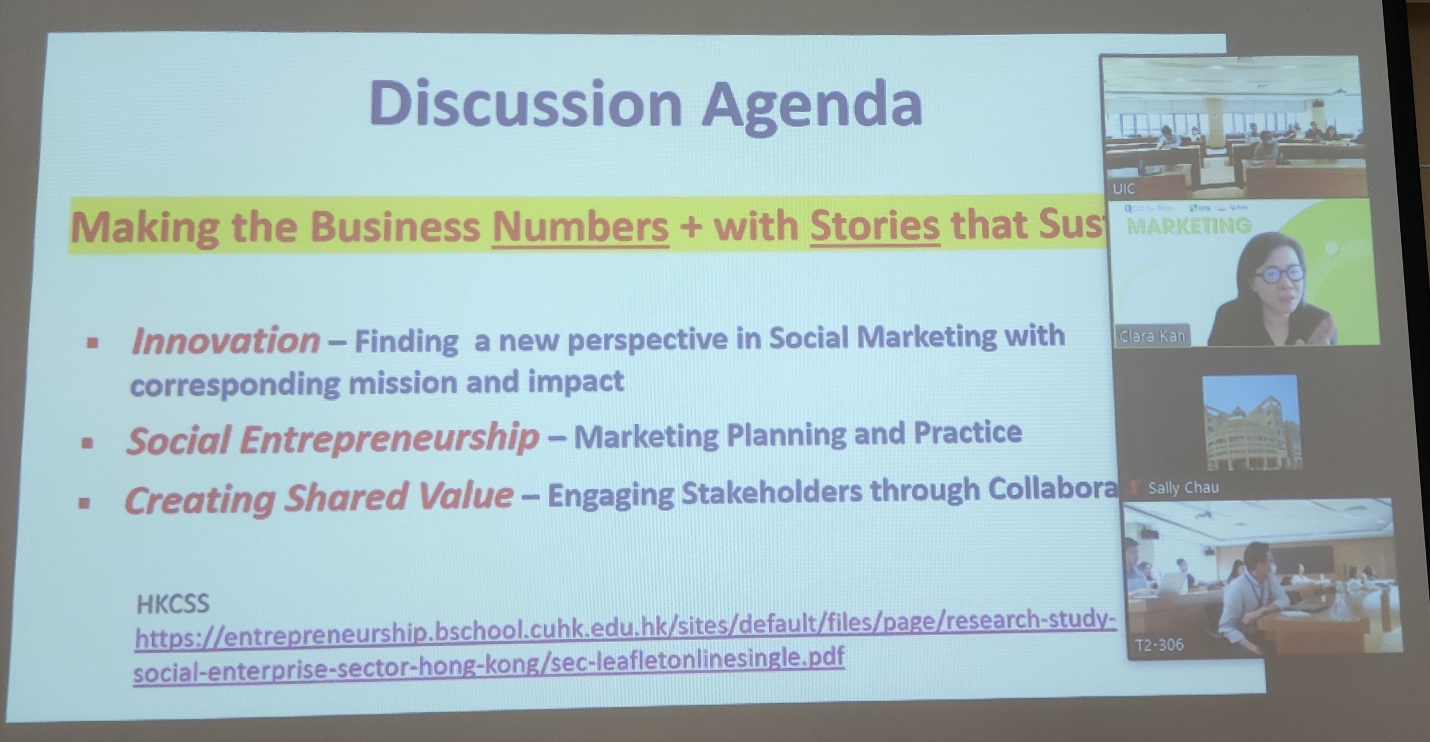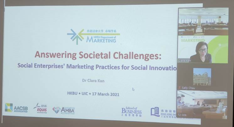 Marketing Management Programme (MKT) of DBM invited Dr. Clara Kan to deliver a lecture on “Answering Societal Challenges: Social Enterprises' Marketing Practices for Social Innovation” on March 10. Due to the COVID-19 pandemic, Dr. Kan presented this lecture online. Dr. Keng Hong Ng, Acting Programme Director of MKT, hosted the lecture.